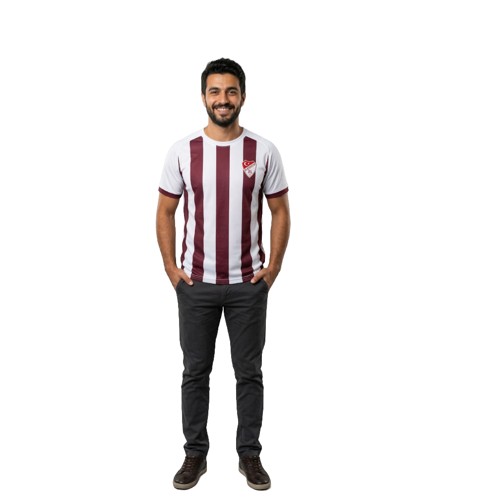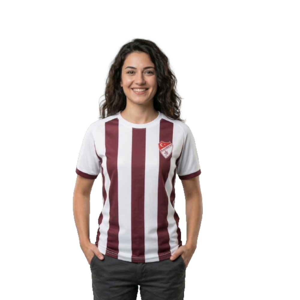 vişne ve beyazın en dengeli buluşması! Klasik çubuklu geleneğini bozmadan, net ve keskin hatlarla hazırlanan bu tasarım, taraftarımızın kalbindeki sarsılmaz sevgiyi simgeliyor. Şehrin renklerini en saf ve en güçlü haliyle üzerinde taşımak isteyenler için bir başyapıt.